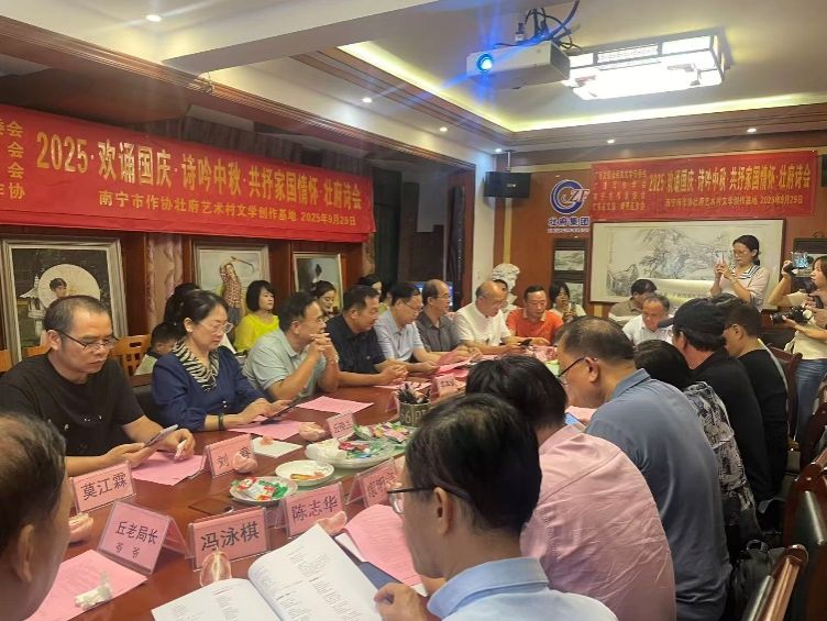 揭牌仪式后,在壮府文化村举办“欢诵国庆、诗吟中秋,共抒家国情怀”壮府诗会。创意写作中心成员以及区内多位著名文艺工作者参会,朗诵诗歌,欢庆双节,共同表达对祖国的美好祝愿。