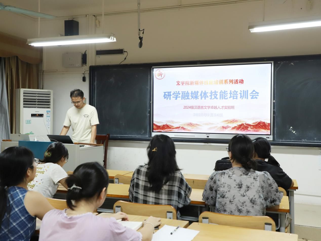 9月24日晚,必赢3003no1线路检测中心2024级汉语言文学专业卓越人才实验班在博文楼201教室召开研学融媒体技能培训会。会议由方仕仗、陈思颖同学主讲,2024级汉语言文学专业卓越人才实验班同学到场学习。