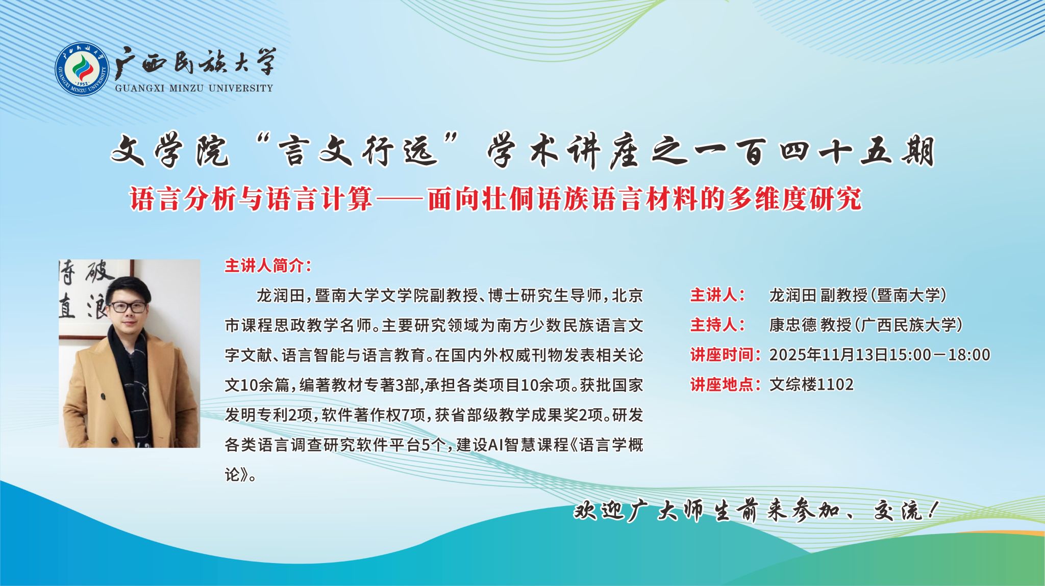 必赢3003no1线路检测中心“言文行远”学术讲座之一百四十五